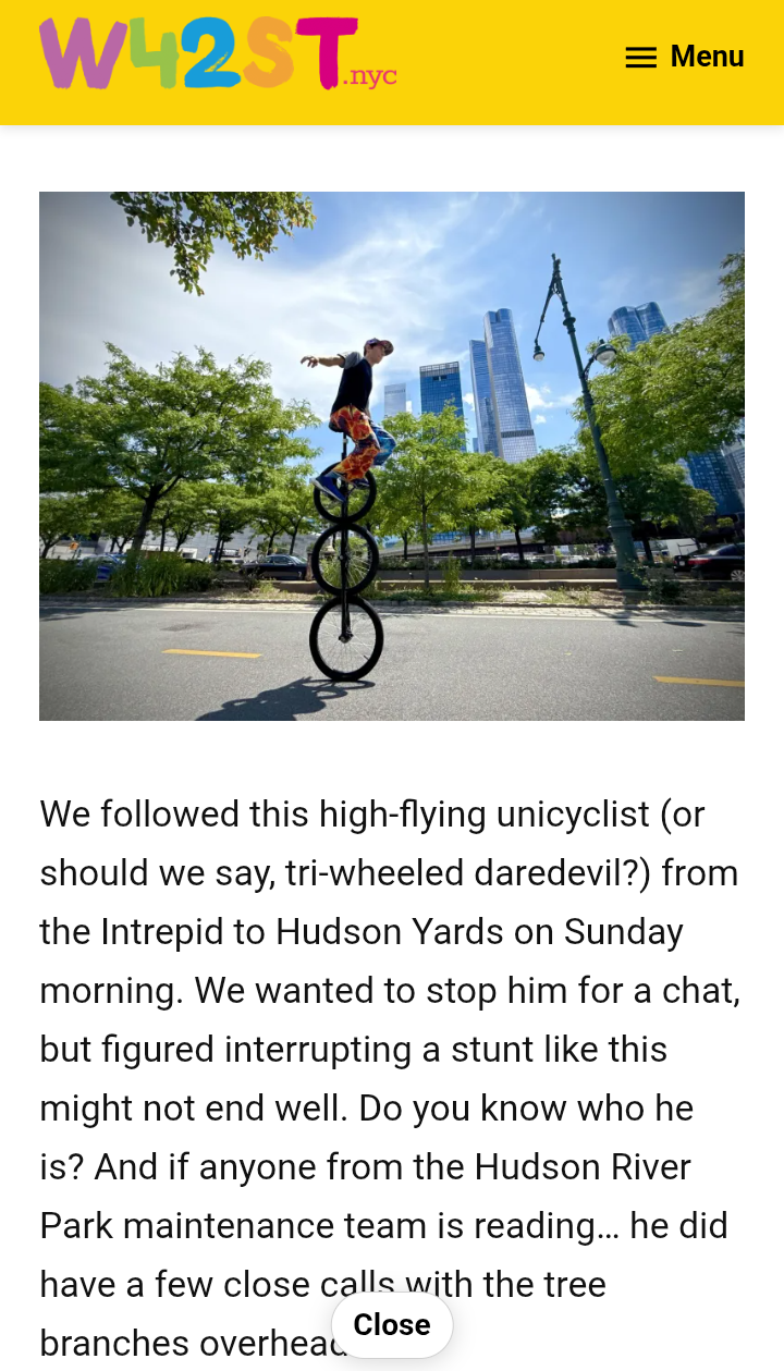 The Three Wheel Man has been featured in numerous publications, including West Side Rag, Jersey City Times, and W42ST.nyc